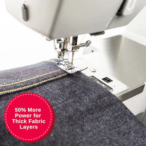 The Singer Heavy Duty 4432 Mechanical Sewing Machine features an effortless design with 32 built-in stitches, a full metal frame, a built-in needle threader, an extra high presser foot lifter, a free arm, a fully automatic one-step buttonhole, and more! By sewing at a speed of up to 1100 stitches per minute, you can complete more tasks quickly. With its powerful motor, the Singer Heavy Duty 4432 is an outstanding mechanical machine suitable for users of all skill levels, even when working with delicate materials or heavy-weight fabric.