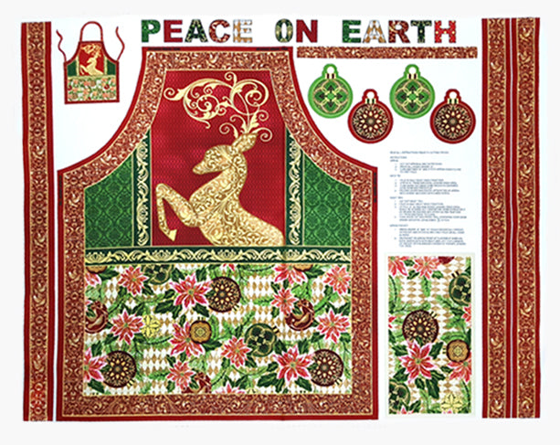 Along with basic sewing supplies, you will need:- "Peace on Earth" Apron Fabric Panel (contains Apron front, 1 neck tie, 2 waist ties, 1 pocket, and bonus items: 4 fabric ornaments for applique or to sew 2 fabric tree ornaments.)