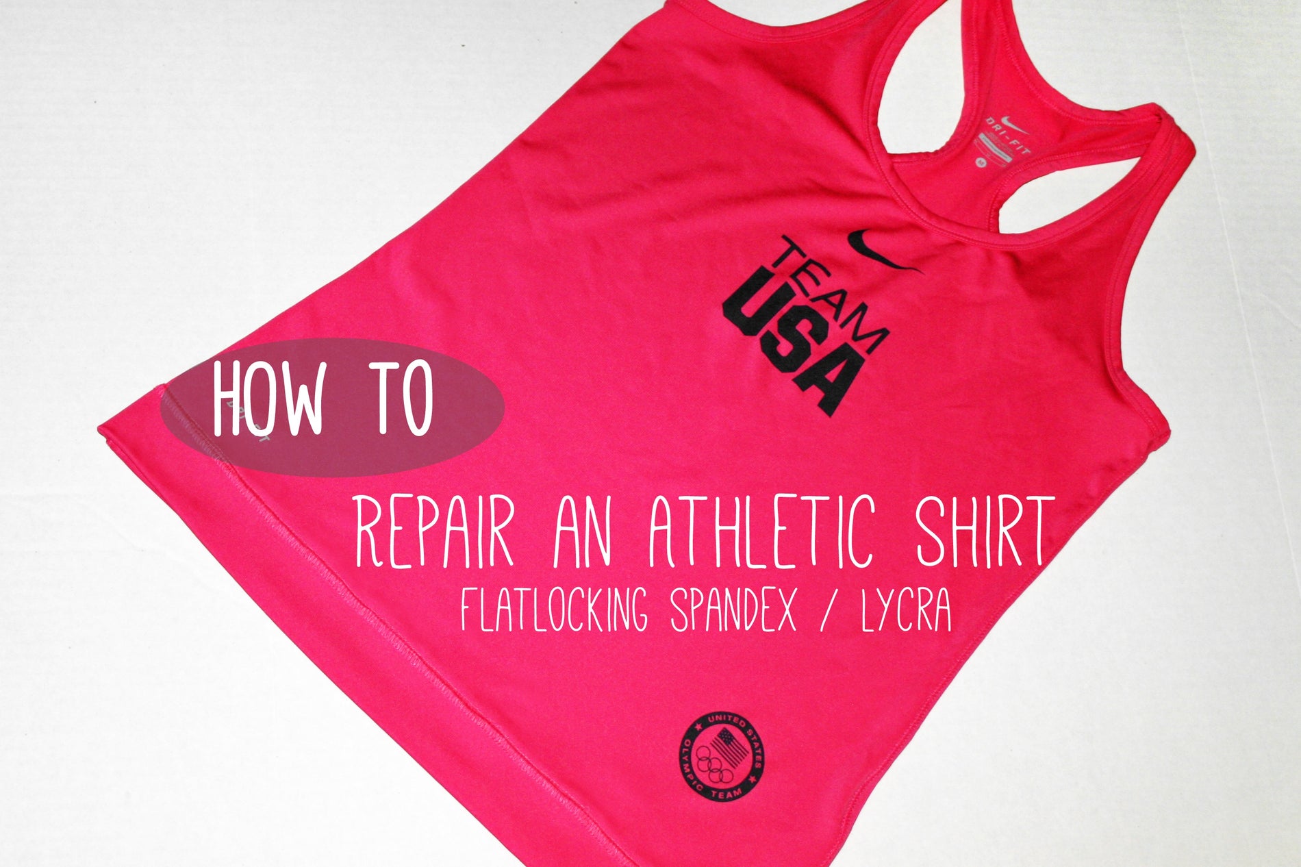 So you have an athletic shirt that needs a good old fashion hem. Except, with lycra/spandex/stretchy magic fabric, there is nothing old fashion. The manner in which you hem athletic or dance clothing is completely different then hemming a simple pair of pants. The concept is the same, but with a few tweaks.