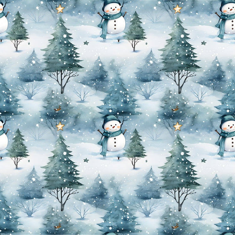 A Snowmans Winter in the Forest Fabric