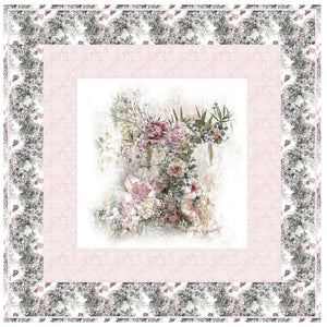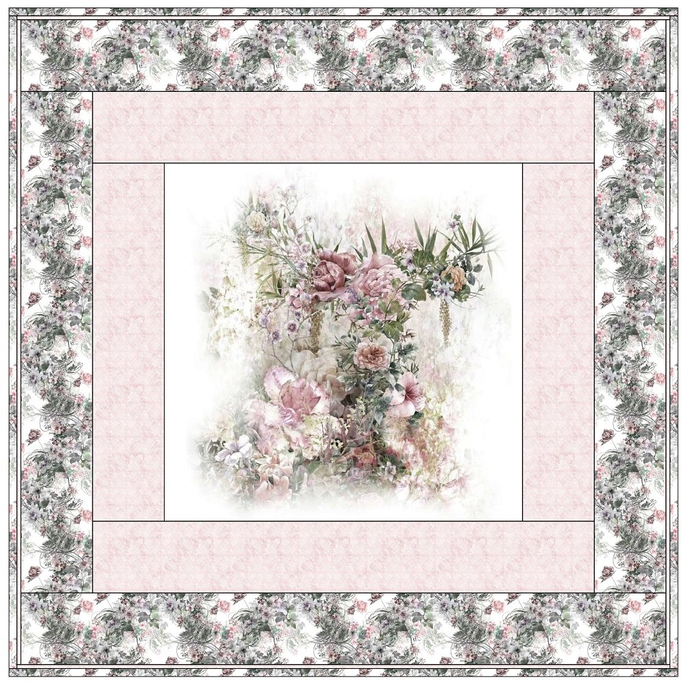 The Abstract Flowers Wall Hanging includes everything that you need to make the quilt - the instructions and a total of 3 1/2 yards of fabric and a 23" panel. It has two borders and is finished with a flange binding. Batting is sold separately. The finished size of this quilt is 42" x 42".