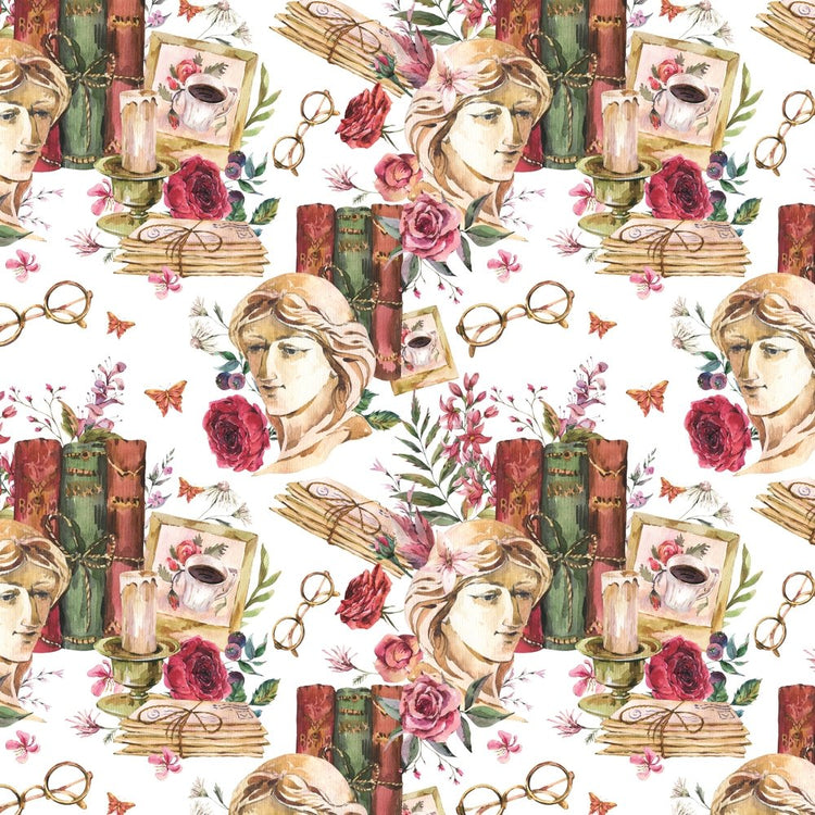 The Vintage Books & Sculptures Fabric is part of the Academia Fabric Collection printed by Sewing Parts Online. Digitally Printed on 100% cotton.