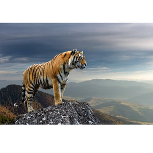 Realistic Tiger Standing on a Rock Fabric Panel Details