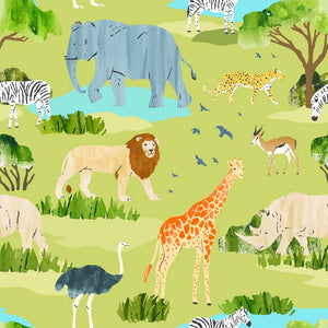 The Watercolor African Safari Animals Fabric is printed by Sew Creative Fabrics. Digitally Printed on 100% cotton.