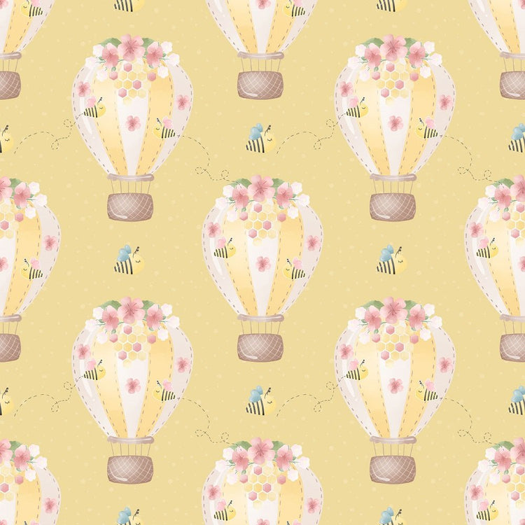The Yellow Bumble Bee Bear Hot Air Balloons Fabric is part of the Bumble Bee Bear Fabric Collection printed by Sew Creative Fabrics. Digitally Printed on 100% cotton.