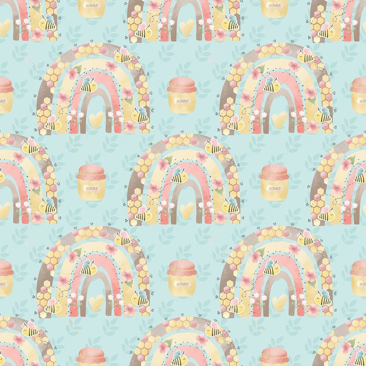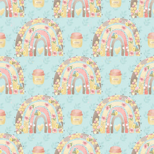 The Blue Bumble Bee Bear Rainbows Fabric is part of the Bumble Bee Bear Fabric Collection printed by Sew Creative Fabrics. Digitally Printed on 100% cotton.