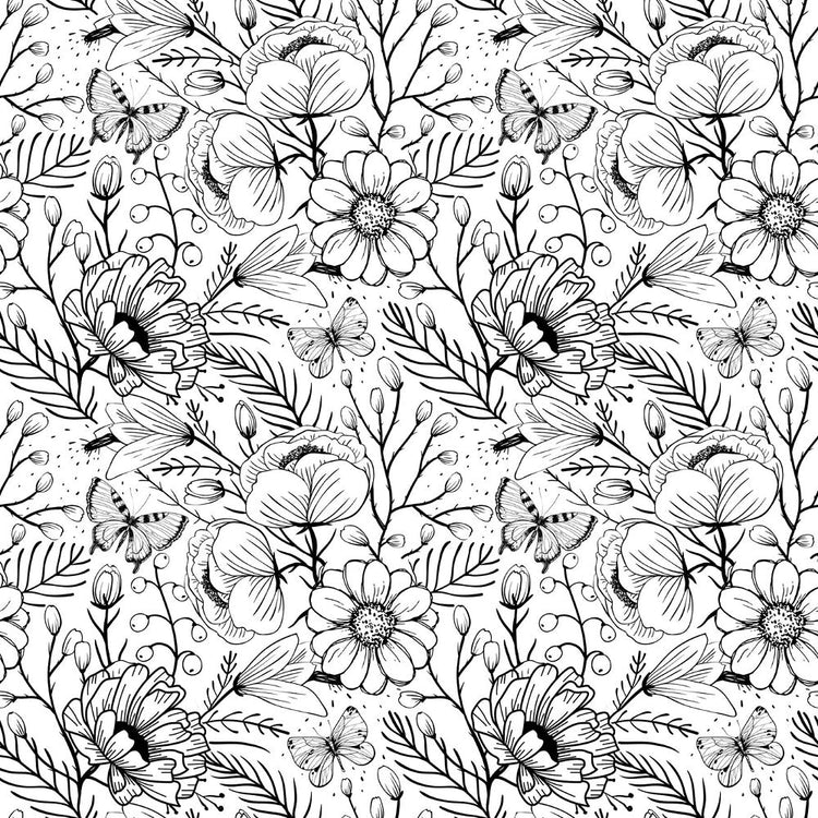 The Black and White Flowers and Butterflies Fabric is part of the Black and White Fabric Collection printed by Sew Creative Fabrics. Digitally Printed on 100% cotton.
