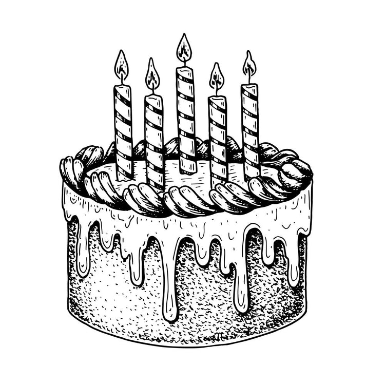 The Black and White Sketched Birthday Party Cake Fabric Panel is part of the Birthday Party Fabric Collection printed by Sewing Parts Online. This panel is digitally printed on 100% cotton. This fabric panel is available in 6 different sizes: