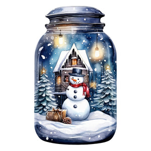 Christmas in a Jar Night Time Snowman Fabric Panel