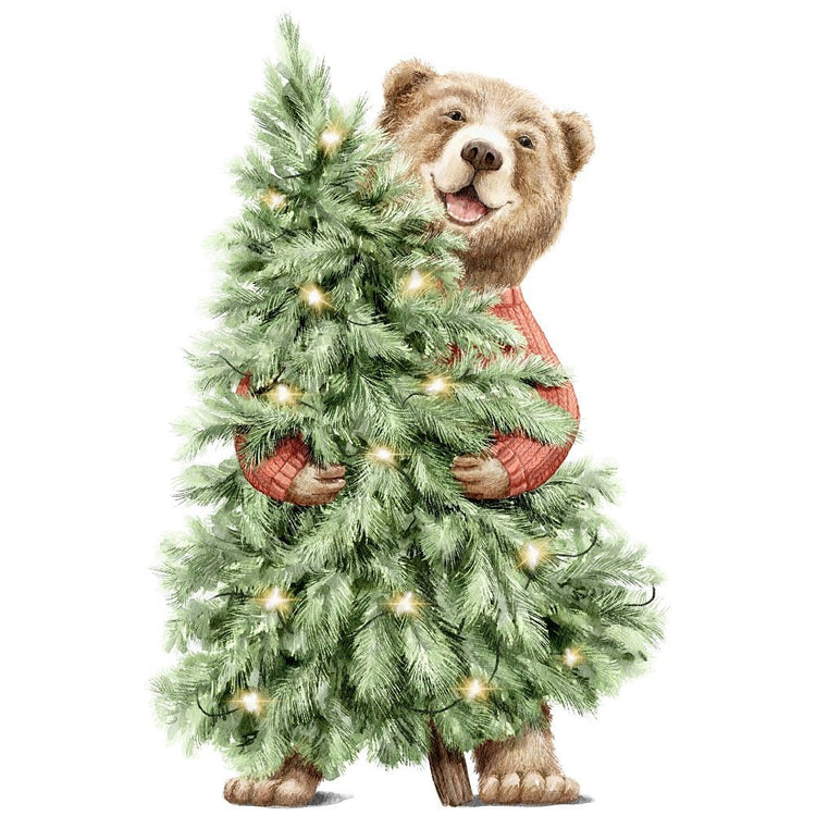 Christmas Little Critters Bear Holding Tree Fabric Panel