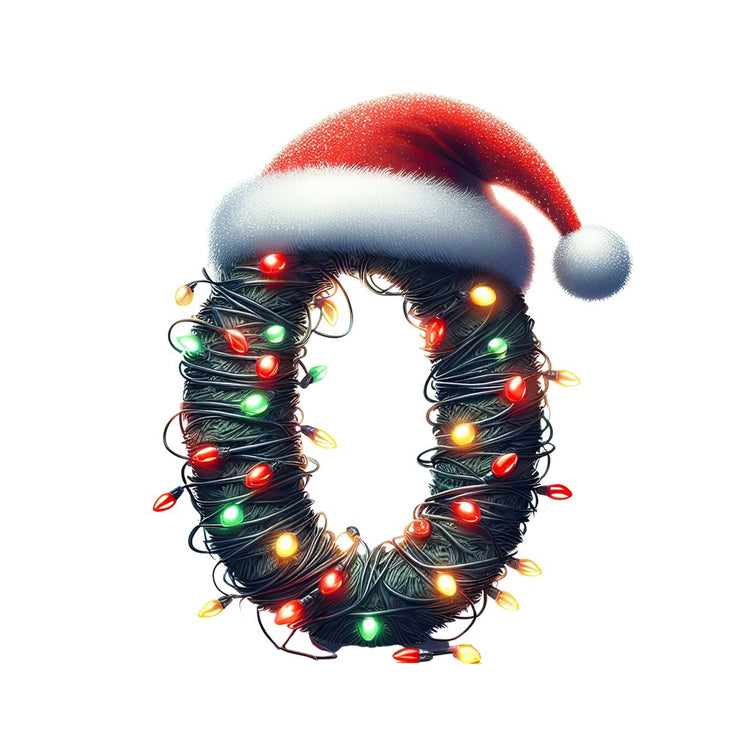 Christmas Lights Wrapped Letter ''0'' Fabric Panel