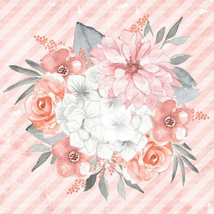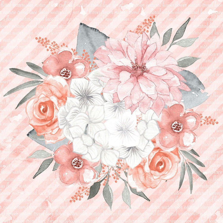 Bouquet on Diagonal Stripe Fabric Panel - Coral