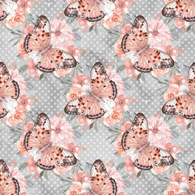 The Grey Butterflies & Bouquets on Dots Fabric is part of the Coral & Grey Fabric Collection printed by Sew Creative Fabrics. Digitally Printed on 100% cotton.