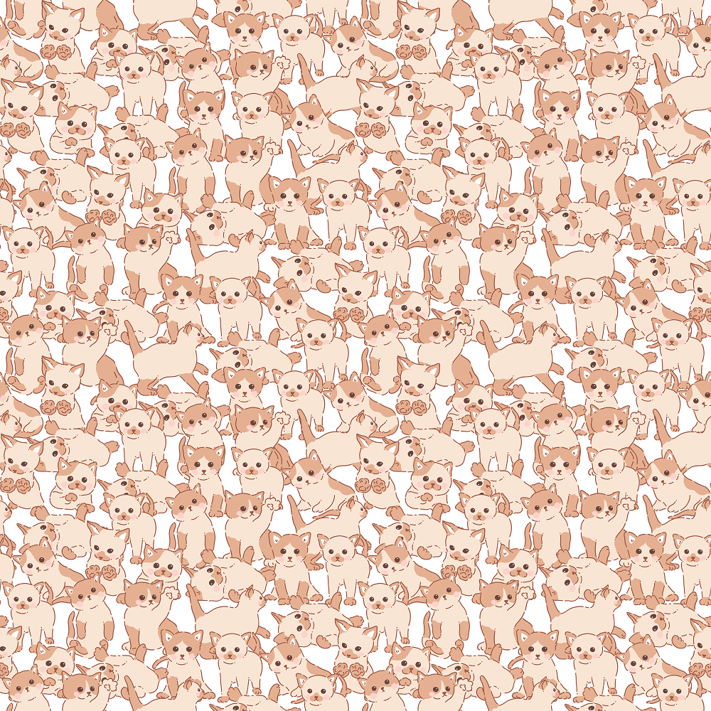 Cute Kittens & Floral Pattern #4 Fabric Details