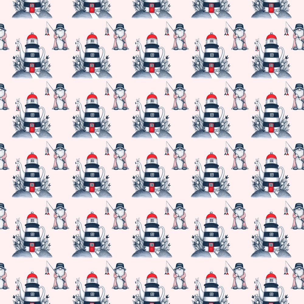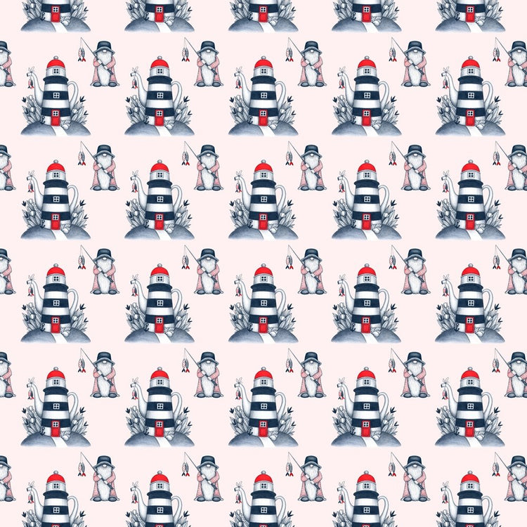 The Pink Gnome At Sea Fabric is part of the Nautical Fabric Collection printed by Sew Creative Fabrics. Digitally Printed on 100% cotton.
