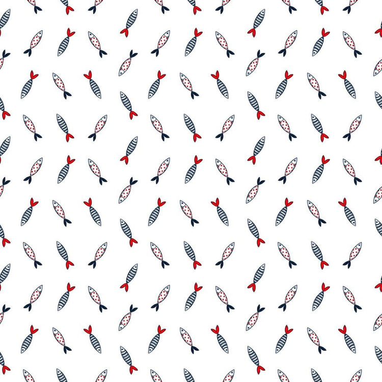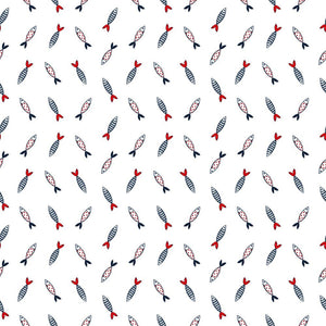 The White Gnomes At Sea Ornate Fishes Fabric is part of the Gnomes At Sea Fabric Collection printed by Sew Creative Fabrics. Digitally Printed on 100% cotton.