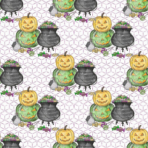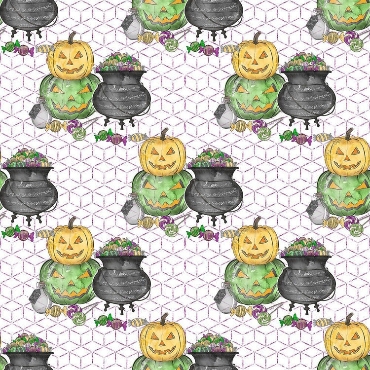 The White Halloween Candy Elements on Trellis Fabric is part of the Halloween Candy Fabric Collection printed by Sew Creative Fabrics. Digitally Printed on 100% cotton.