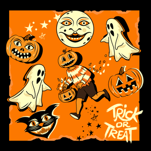 Vintage Halloween Characters Fabric Panel