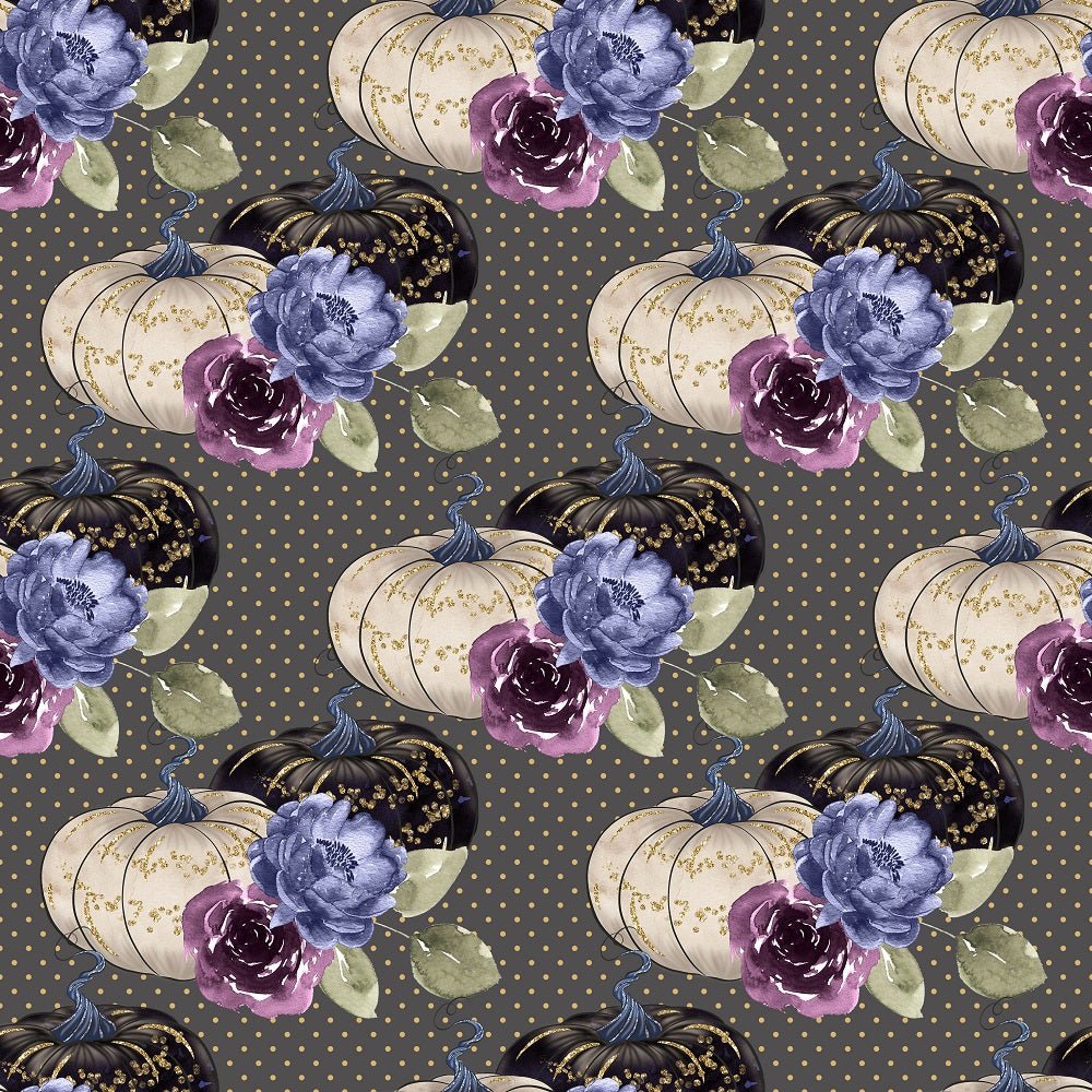 Halloween Night Pumpkins on Dots Fabric - Gray Details