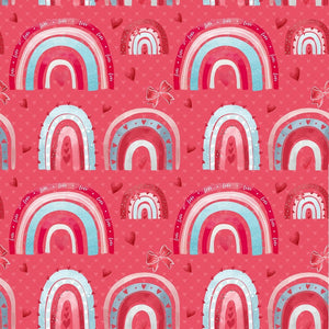 The Packed Valentine Rainbows & Bows Fabric is part of the Hearts & Rainbows Fabric Collection printed by Sew Creative Fabrics. Digitally Printed on 100% cotton and measures 43-44" wide.