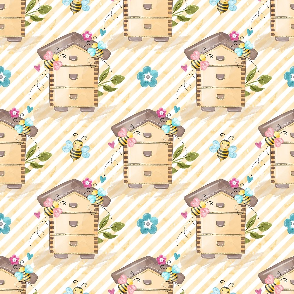 The Yellow & White Honey Bee Colony & Stripes Fabric is part of the Honey Bee Fabric Collection printed by Sew Creative Fabrics. Digitally Printed on 100% cotton.
