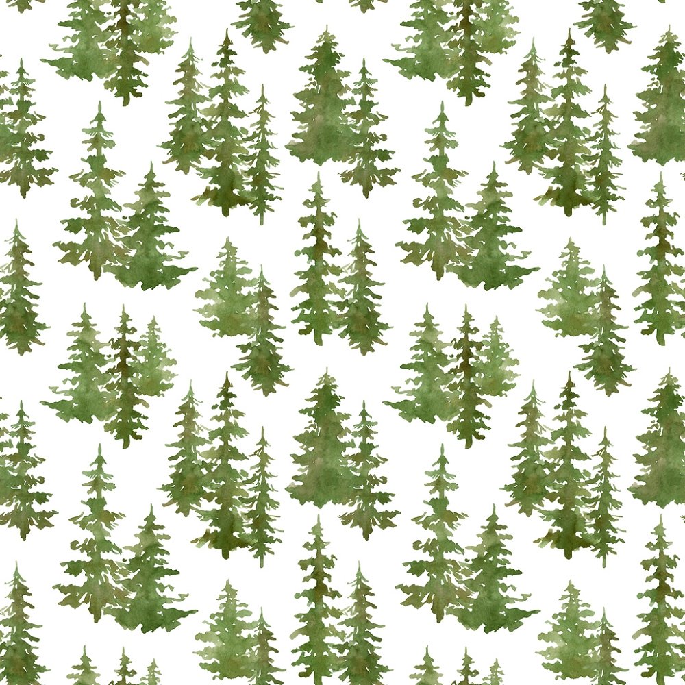 Evergreen Fir Tree Forest Watercolor Fabric - Green Details