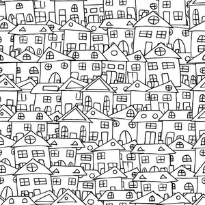 Packed Houses Fabric - Black/White Details