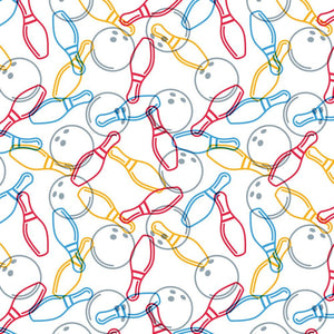The Packed Outlined Bowling Elements Fabric is part of the Sports Fabric Collection printed by Sew Creative Fabrics. Digitally Printed on 100% cotton.
