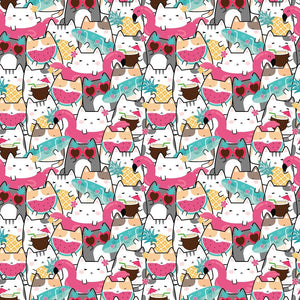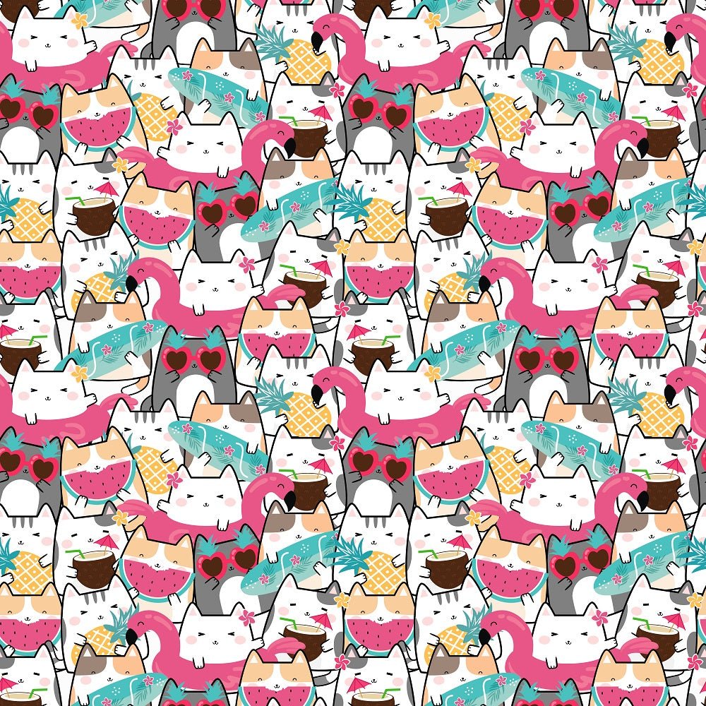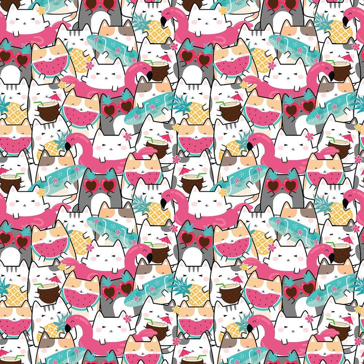 The Summertime Cats Packed Cats Fabric is part of the Summertime Cats Fabric Collection printed by Sew Creative Fabrics. Digitally Printed on 100% cotton.