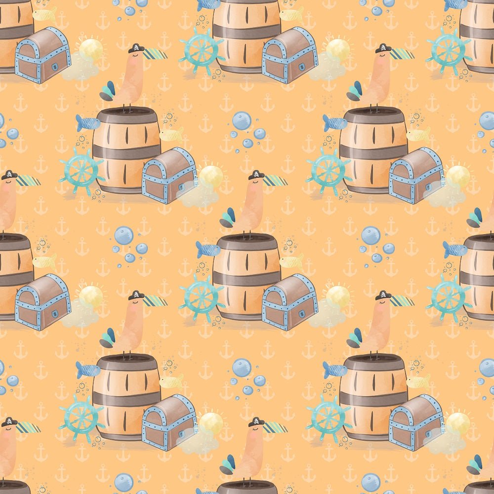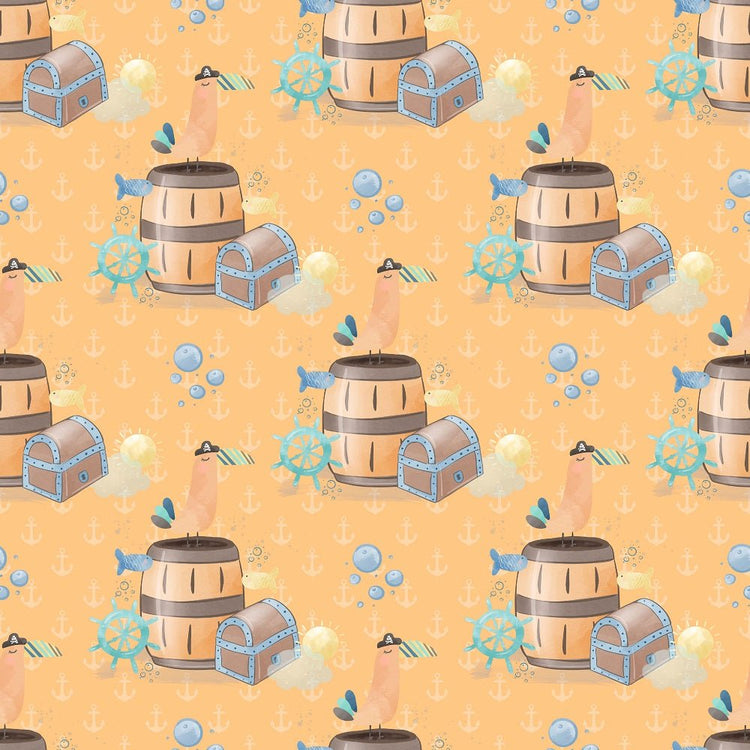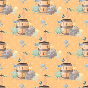 The Orange Pirates Arrangement & Anchors Fabric is part of the Pirates Fabric Collection printed by Sew Creative Fabrics. Digitally Printed on 100% cotton.