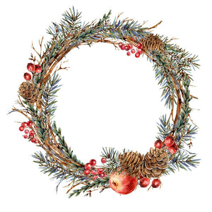 Fir Branch & Berry Wreath Fabric Panel Variation 1