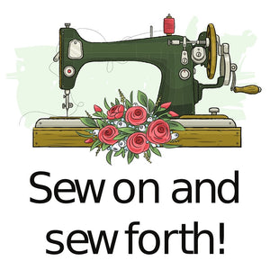 The Sew On And Sew Forth Fabric Panel is part of the Quilting Quotes Fabric Collection printed by Sewing Parts Online. This panel is digitally printed on 100% cotton. The fabric panel is available in 6 different sizes: