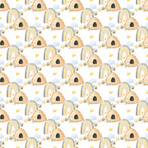 The Grey Cartoon Bee Hives on Geometric Dots Fabric is part of the Rainbows & Bumble Bees Fabric Collection printed by Sew Creative Fabrics. Digitally Printed on 100% cotton and measures 43-44" wide.