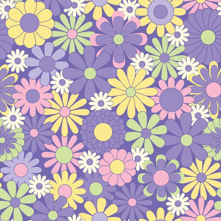The Purple Groovy Floral Fabric is part of the Retro Fabric Collection printed by Sew Creative Fabrics. Digitally Printed on 100% cotton.