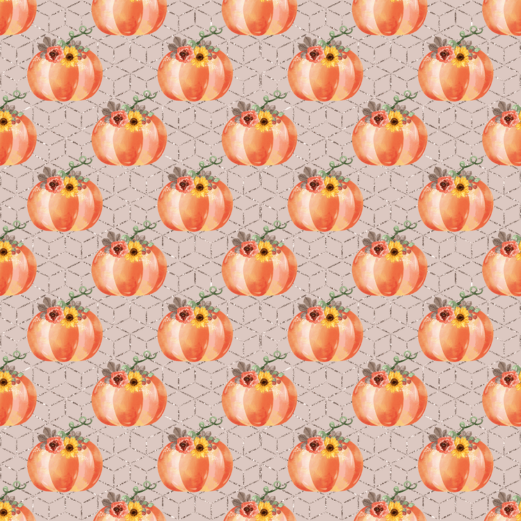 Packed Autumn Pumpkins & Florals Fabric - Tan Details
