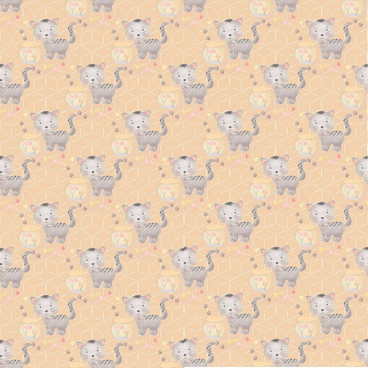 Curious Cat with Fish Bowl Fabric - Yellow Details
