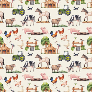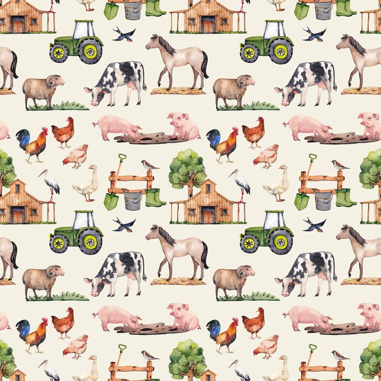The Tan Watercolor Allover Farm Animals Fabric is printed by Sew Creative Fabrics. Digitally Printed on 100% cotton.