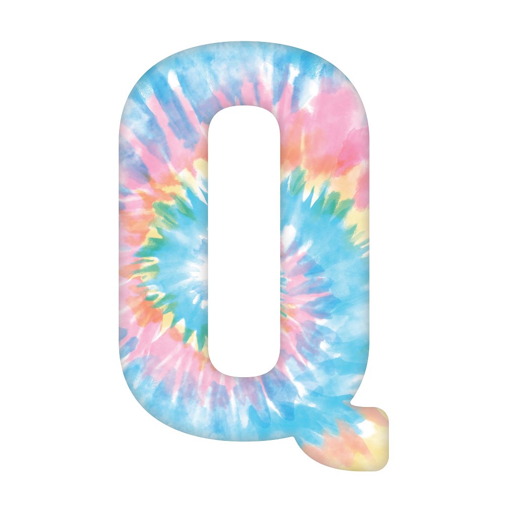 The Tie-Dye Letter Q Fabric Panel is a part of the Tie-Dye Alphabet & Numbers Fabric Collection printed by Sewing Parts Online. Digitally Printed on 100% cotton.