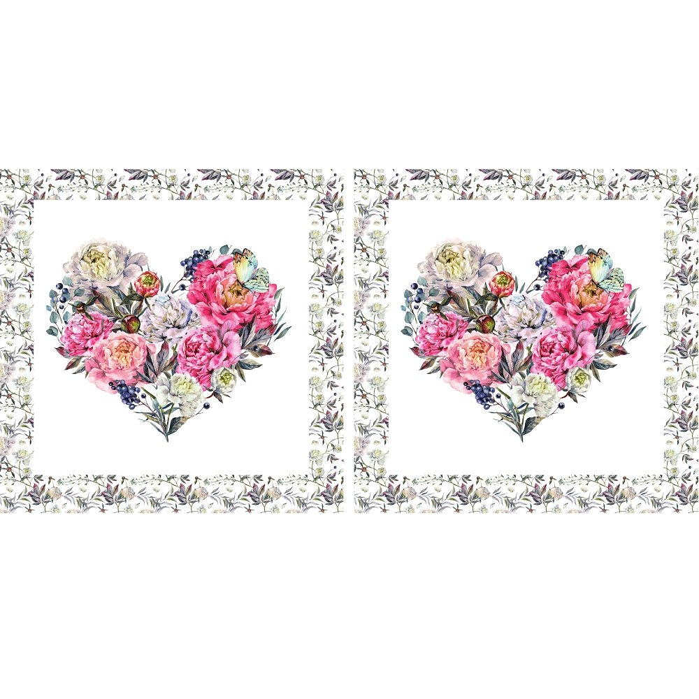 The Heart of Peonies Pillow Panels is a part of the Pillow Panels Fabric Collection printed by Sew Creative Fabrics. Our pillow panels are designed to be extremely simple to put together, some other brands do not provide a 1/4-inch seam allowance, we provide a 2-inch border. Each pillow panel contains 2 pillow panels side by side. You can use the second panel as backing or purchase a yard of White Watercolor Peonies Fabric to have the backing the same as the border print.