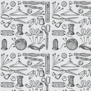 Vintage Sewing Symbols Fabric - Gray Details