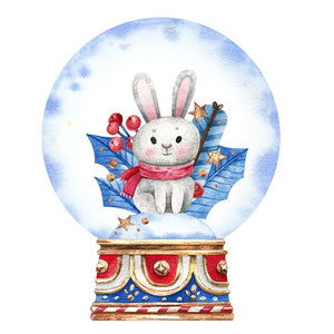 The Bunny in Snowglobe Fabric Panel is a part of the Watercolor Christmas Stories Fabric Collection printed by Sew Creative Fabrics. This panel is digitally printed on 100% cotton. The fabric panel is available in 6 different sizes: