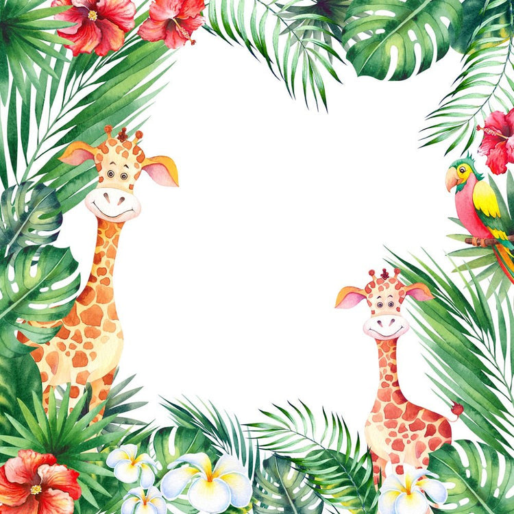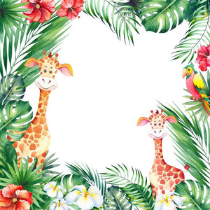 The Cute Giraffe Frame Fabric Panel is part of the Watercolor Cute Safari Animals Fabric Collection printed by Sewing Parts Online. Digitally Printed on 100% cotton. This panel is available in 6 different sizes: