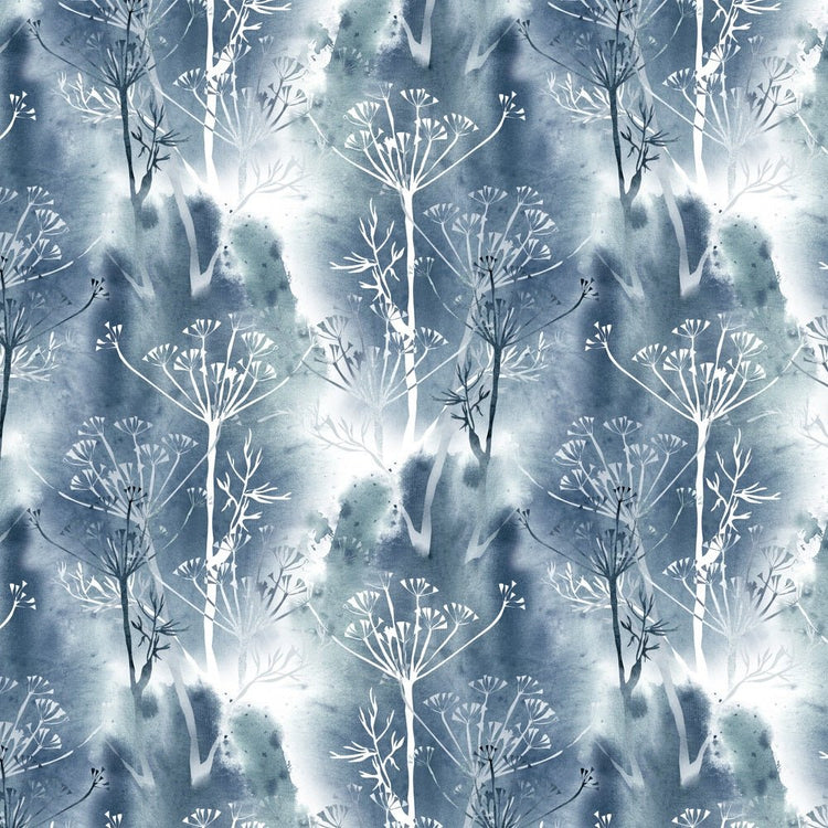 Watercolor Grunge Dill Flowers Fabric - Cyan Details