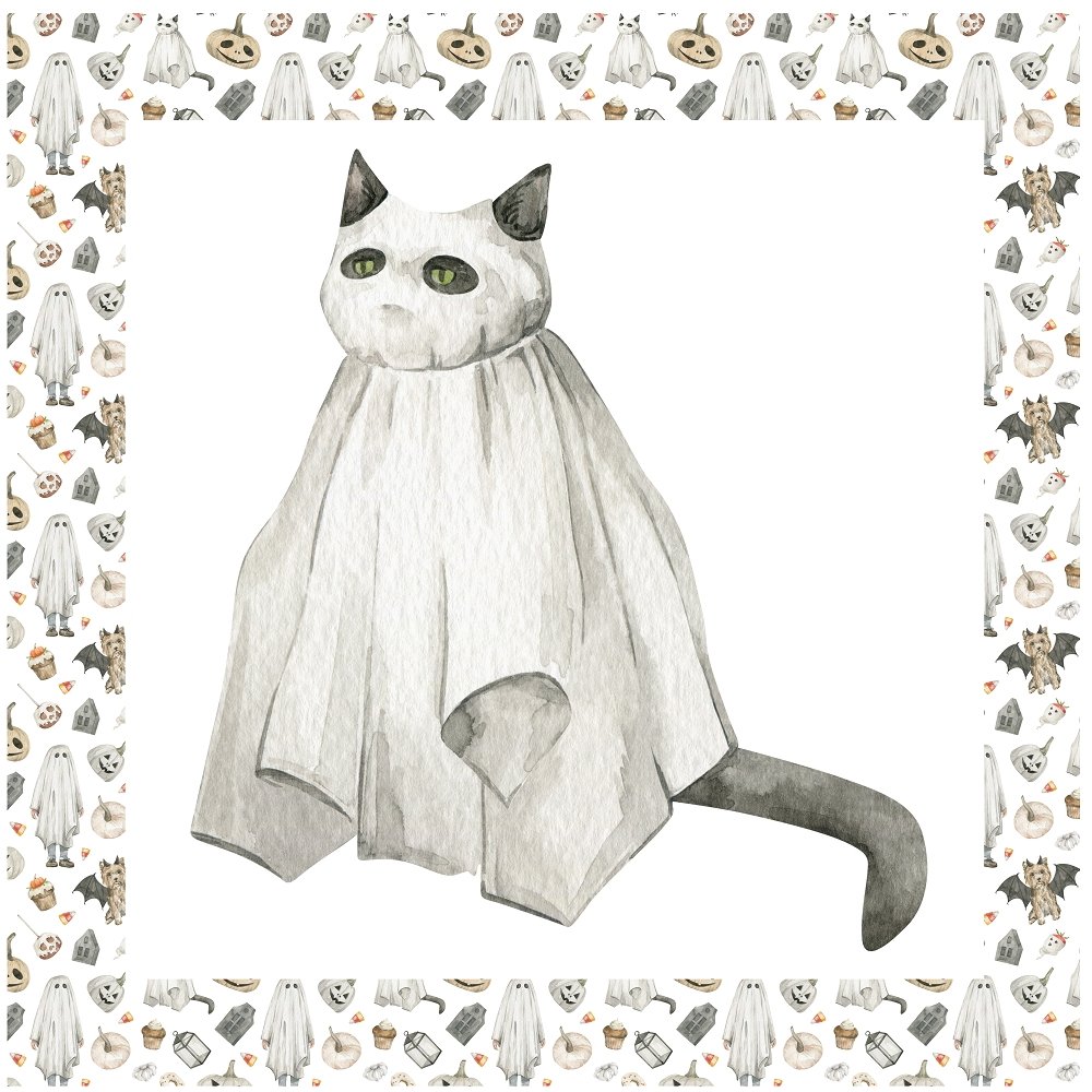 - Halloween Still Life Ghost Dog 2 Fabric Panel