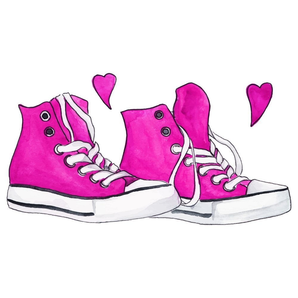 The Pink Watercolor High-Tops Fabric & Hearts Panel is part of the Watercolor High-Tops Fabric Collection printed by Sewing Parts Online. Digitally Printed on 100% cotton. This panel is available in 6 different sizes: