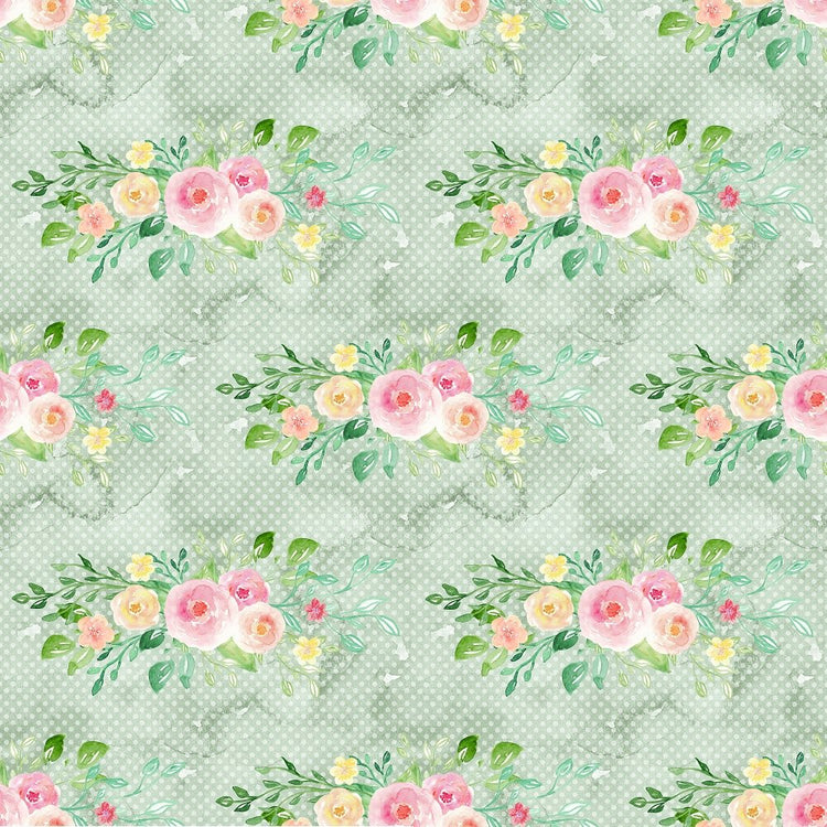 The Green Decorative Wild Flower on Small Polka Dot Fabric is part of the Wild Flower Fabric Collection printed by Sew Creative Fabrics. Digitally Printed on 100% cotton and measures 43-45" wide.