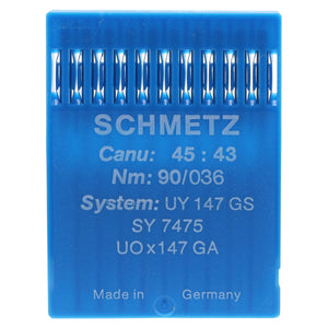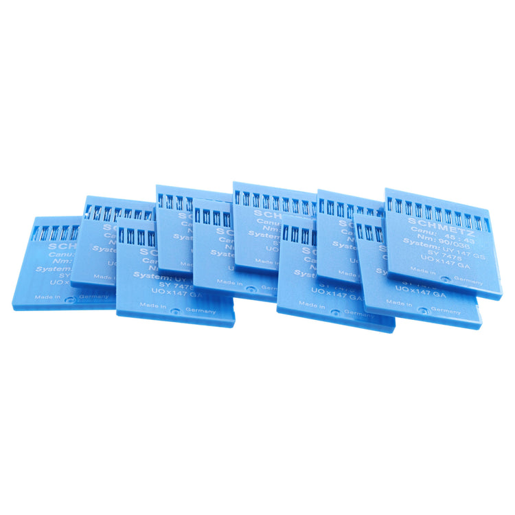 Schmetz UOx147GA Needles is a pack of 100 needles in a plastic case. Available in size 90/14, 100/16, 120/19, 125/20, and 140/22.