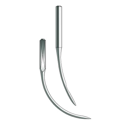 Groz-Beckert's curved sewing needles work with overlock machines. The light ballpoint on these needles are great for general knit fabrics, woven fabrics made from cotton and/or synthetic sewing fabric (i.e., shirts, underwear, fine seaters). Each box of Groz-Beckert Curved Industrial Needles comes in a pack of 100.