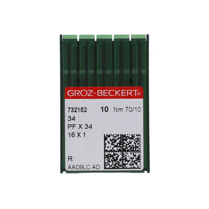 Industrial, round shank, needles. Available in sizes 70/10 and 80/12.