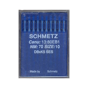As one of the largest manufacturers of needles, you can always trust that Schmetz Needles will get the job done in any project. The DBxK5 SUK has a medium ball point that is more rounded than a light ball point. Therefore, it can be used for coarser knitwear and is also suitable for medium to heavy denim. Schmetz's Industrial DBxK5 SUK comes in a pack of ten and is available in various sizes.